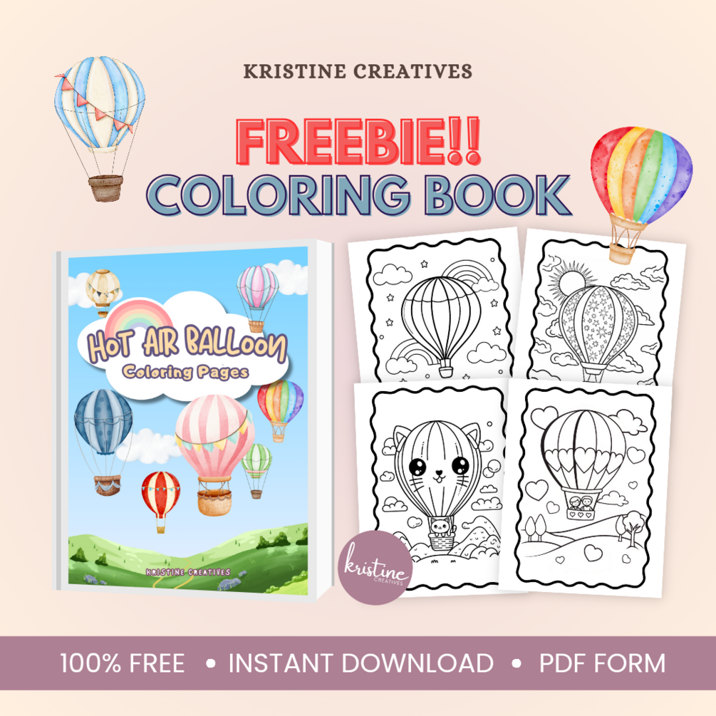 You’ll get a 10-page Hot Air Balloon themed coloring book in PDF form.